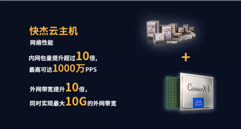 先看用户网公路,即用户与主机之间相互通信的网络,UCloud自研了网络增强2.0技术,使得快杰云主机的网络最高性能达到了1000万PPS,是上一代云主机的10倍。