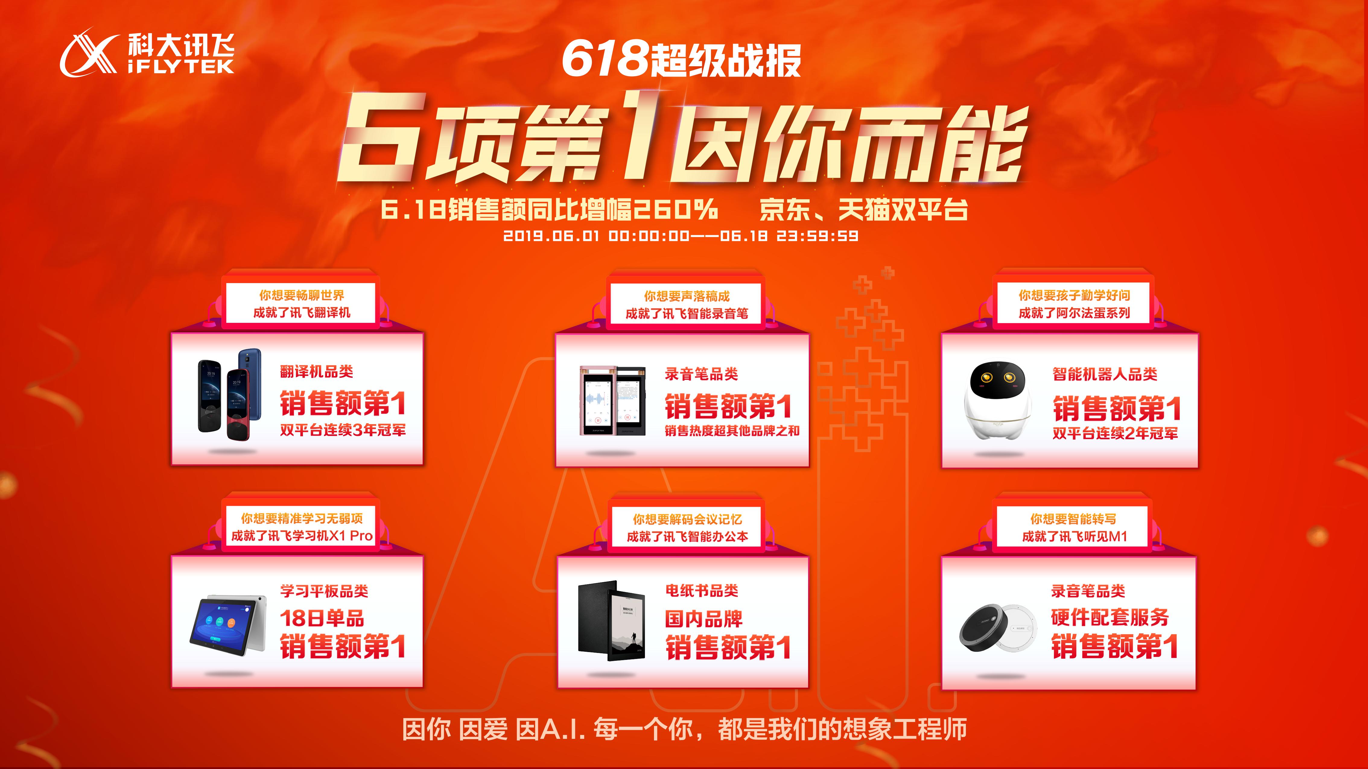 在前不久刚结束的618年中大促中,科大讯飞面向C端消费者的智能硬件产品,就成为了各大平台智能硬件品类,屠榜的“红人爆款”。据京东、天猫双平台战报数据显示,6月18日科大讯飞销售额同比增幅260%,斩获翻译机、录音笔、智能机器人、学习平板、电纸书等六大智能品类销量第一,且翻译机品类连续三年获得双平台销售额冠军,智能机器人连续两年获得该品类销售额冠军。科大讯飞智能产品矩阵究竟有何魅力,可以独占消费者业务的龙头地位?
