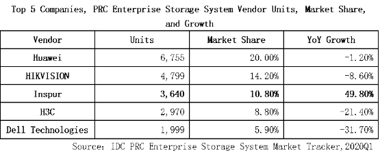 IDC 2020Q1中国存储市场数据