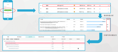 通过端到端监控技术,基于唯一的请求ID标识自动串接从用户前端到后端应用代码以及基础设施的整个请求,基于单次请求序列还原问题快照,帮助用户从外到内逐步分析每个环节对应用性能造成影响的问题瓶颈。