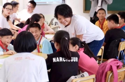 去年底我带着我的两个女儿一起去助教,我们用一些好玩的游戏,教五年级的学生怎么样学习英文。我们科技的同事非常用心,因为学生们平时学英语没有交流,不知道读得对不对,我们就做出了一个APP让他们辨认读得对不对,让他们可以跟APP交流。当时我们把做的这个东西放在他们的电脑上,让学生可以去做,他们都非常开心。