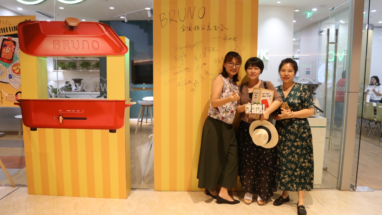 美食互动后,BRUNO更是布置了惊喜环节,现场抽出锦鲤一名,赠送BRUNO轻食机一台,气氛瞬间到达高潮,每个人都迫不及待的拆开自己的伴手礼,最终轻食机由我们的莺莺小仙女获得啦!