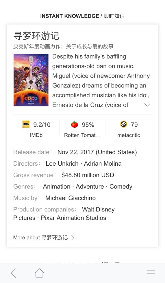 打开眼界看世界的今天,对海外资讯和知识的便捷获取,已成为全球化浪潮中的一大刚需。近日,全球首个跨语言搜索引擎——搜狗英文搜索对首页进行全新改版,聚合展现热点资讯、即时知识、精致美图、英文网站导航等优质海外信息及内容渠道,助国人拓宽全球视野,更快捷获取最新最热的全球资讯和知识。 打开搜狗英文搜索频道,首先看到的便是热点资讯版块。该版块每天更新五条全球最热门新闻资讯,涉及政治、军事、科技、娱乐、人文等不同领域,让你第一时间获知全球重大新闻。如,腾讯市值超过Facebook、尼日利亚自杀式袭击事件等最新爆出的热门新闻,就登上了搜狗英文搜索的“头条”。而如果用户对某条资讯感兴趣,想进一步阅读了解,只需点击相应新闻的缩略图即可直接跳转至搜索结果页,从搜狗英文搜索提供的海量搜索结果中选择阅读关于该事件的更多信息。 ![]() (图:“热点资讯”界面) 热点资讯下方的即时知识版块,会为用户即时科普国外热门知识,包括影音作品、人物类百科词条等,每个知识词条都以结构化形式呈现,帮助用户有效提升知识储备。如影音作品类词条,除能提供剧情介绍、基础信息等内容外,还汇集了IMDb(互联网电影资料库)、Rotten Tomatoes(烂番茄)、Metacritic(聚众评分网站)等专业电影网站、评分网站对于该影视剧的评价,方便用户参考了解。同样,用户只需点击词条标题,即可直接进入搜狗英文搜索的搜索结果页面获取该知识点更详细的介绍。 ![]() (图:即时知识版块对《寻梦环游记》的全面介绍) 而在搜狗英文搜索首页底部的精致美图版块,则提供了海外知名景点或城市的风景图片,使用户得以直观领略海外风光、异域风情。用户点击图片,也能通过搜狗英文搜索的搜索结果页,了解这些热门地标的基础信息、外媒评价、旅游信息等资料。 ![]() (图:精致美图界面) 尤其值得一提的是,作为全球首个跨语言搜索引擎,对于任何一个搜索词搜狗英文搜索均能提供英文原文、中文译文、中英双语三个搜索结果页面,可一键切换选择性阅读。点开链接,每篇文章也都有英文和中文两个可自由切换的页面。据悉,搜狗英文搜索频道背后依赖的搜狗机器翻译,应用了最前沿的基于深度学习的神经网络机器翻译框架,能够通过理解上下文语境给出精准翻译结果,其翻译效果已达到行业领先水平。这意味着,即使不精通英文的国内用户,也可以借助搜狗英文搜索频道无障碍阅读世界范围内的英文信息。 ![]() (图:“肯豆全球超模收入第一”词条的中英双语页面) 搜狗英文搜索首页除了能直接为用户提供热点资讯、即时知识、精美图片等优质多元的海外信息外,还在页面右侧聚合各领域垂直类网站导航,点击即可进入,以满足用户的深度求知需求。热门海外网站导航版块涵盖的渠道类型非常广泛,包括BBC、CNN、YAHOO Finance等资讯类平台,Github、Stack Overflow等技术交流类站点,Wikipedia、Quora等知识平台,IMDb、Buzzfeed等兴趣类网站,以及Tripadvisor、Yelp等出行旅游平台。这些全球知名的垂直类网站,能满足国内用户对海外热点新闻、出行旅游、技术知识等更细分领域信息的搜索需求。 另外,升级后的搜狗英文搜索频道,除了对首页内容进行了调整以外,还新增了知识图谱及权威词典两大功能。其中,知识图谱功能在用户提交搜索需求后,可结构化展现与搜索关键词相关联的信息,帮助用户更便捷、清晰获取海外信息。目前该功能已经覆盖歌曲、电影、电视剧、书籍、欧美明星、热门景点地区等搜索内容。 ![]() (图:“Katy Perry(水果姐)”搜索结果页聚合信息展示) 权威词典功能,则旨在帮助用户解决对于英文词汇的查询需求。用户通过搜狗英文搜索检索词汇时,系统会自动判断用户查询意图,并在搜索结果第一条为用户提供“词典卡片”。“词典卡片”集中展示了该词汇的释义、发音、例句、形态,方便用户更快速了解与查询词相关的信息。据了解,基于搜狗搜索与权威词典达成的合作,目前该功能已收录超过10万个单词量,能最大程度满足用户对英文词汇的搜索需求。 互联网技术的持续进步,让各类碎片化信息每天都在爆炸式增长,也助推了获取信息的成本。升级后的搜狗英文搜索,不仅利用前沿人工智能技术,打破语言壁垒,帮助国人无时差获取、无障碍阅读海外信息,更是通过聚合展现丰富的英文资讯和信息渠道,拓展了国人的全球化视野,满足你探索更大世界的好奇心与求知欲。 |