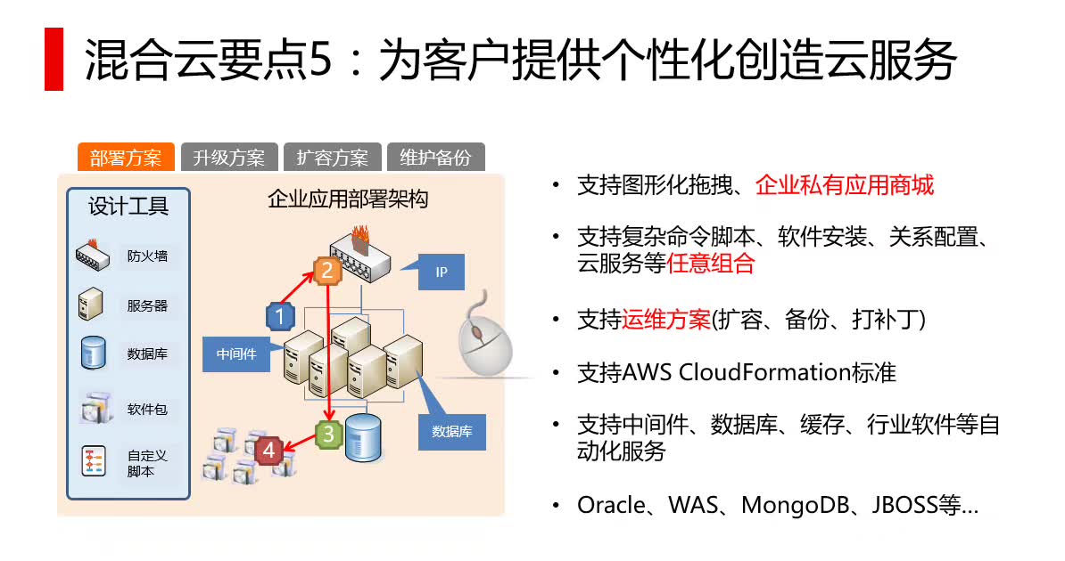 当然,邱洋提醒说,IDC在做混合云规划时,不妨充分考虑如下策略: