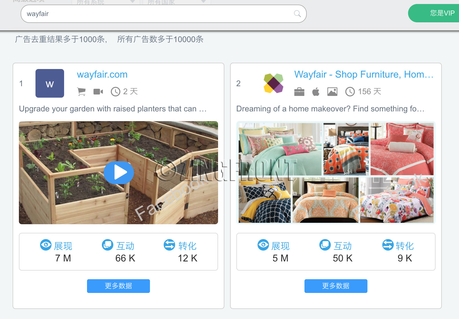 除了Amazon、Wish、速卖通等大平台的素材数据,全球Top独立站同样都有素材收录,比如,大名鼎鼎的北美家纺巨头wayfair。