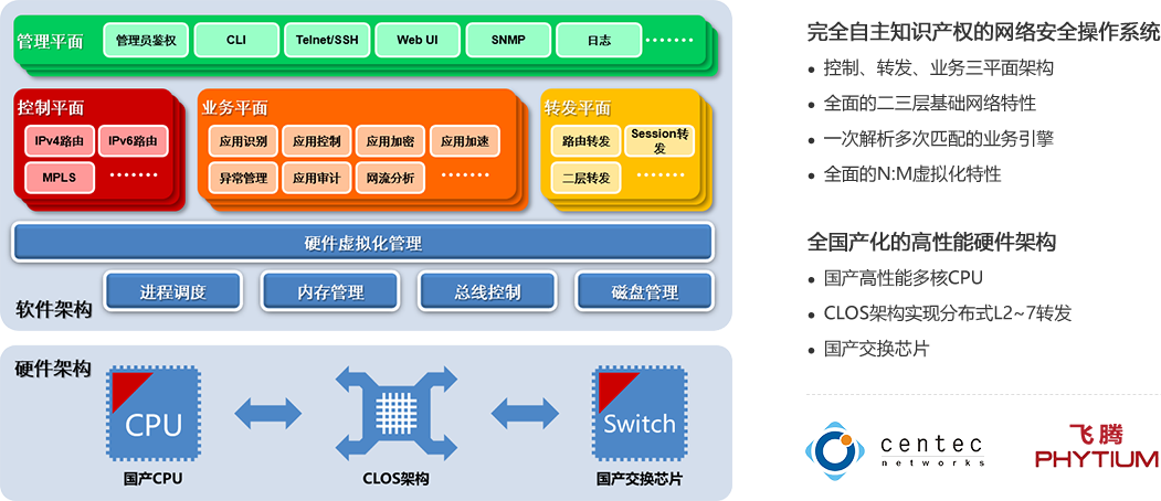 除国产芯片外,迪普科技全系列产品均采用L2~7国产化操作系统Conplat,全面融合了网络、安全与应用交付特性,具备丰富的业务能力,可满足用户对于网络安全业务的快速部署、稳定可靠、易于管理等需求。