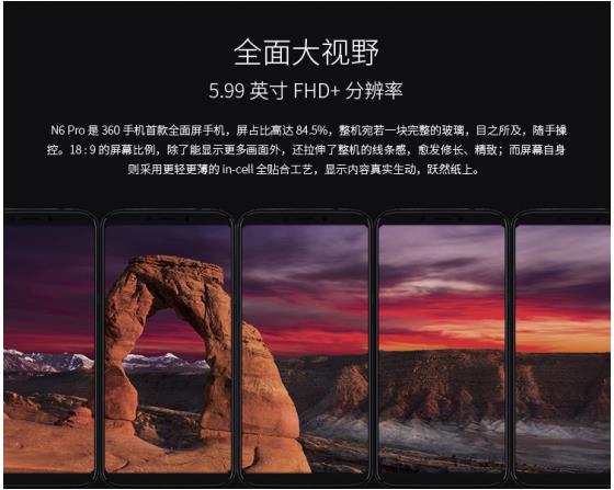 在用户最为关注的全面屏方面,360手机N6 Pro配备了一块5.99英寸的18:9全面屏,屏占比高达84.5%,是iPhone 8 Plus的1.3倍,分辨率和像素密度分别达到了2160x1080像素、391PPI,远超视网膜显示标准,确保了显示效果细腻清晰,无论是文字还是图片都有令人满意的表现。