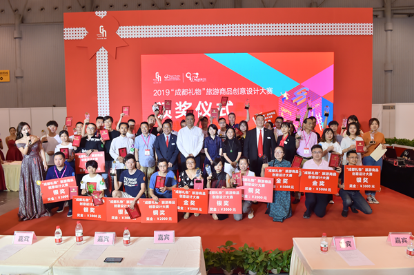 本次大赛获得金奖的3名,分别是东莞市富里居家居礼品有限公司的熊猫造型合金音乐铃、金牛区春榆办公用品商贸部的蜀绣双面绣吊坠、成都澜山文化传播有限公司和成都金沙遗址博物馆的神秘古蜀之金沙双耳面具杯。