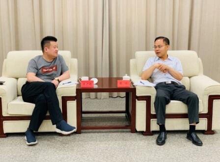 华云数据集团董事长、总裁许广彬与雄安新区党工委委员、管委会副主任梁远交谈