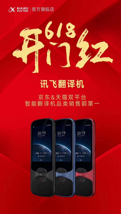 在天猫和京东此次的618活动中,从6月1日开始,讯飞翻译机连续5天获得智能翻译品类销售额第一的好成绩。