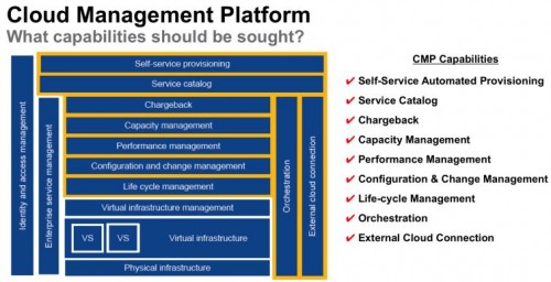 什么是云管理平台?先来看看Gartner对CMP的定义:CMP (Cloud management platform,云管理平台)是一种管理公有云、私有云和混合云环境的整合性产品,其最小的功能范围应该包括自服务界面、创建系统镜像、监控和账单,以及基于策略的一定程度的负载优化等。高级的功能还包括整合外部已有的企业管理系统,包括服务目录、存储和网络资源配置,更高级的资源管理和监控,比如客户机性能和可用性监控等。