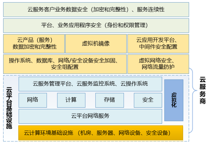 云服务客户则需对云上各类可控的资源(如虚拟机、安全组、云平台提供的安全功能)等进行配置,需对自行部署在云上的业务应用、操作系统、数据库、中间件、数据等负有完全的安全责任。