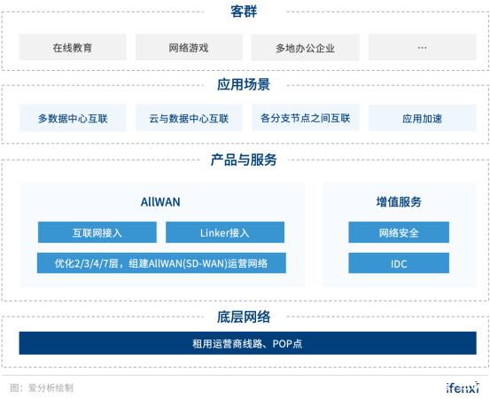 除了AllWAN网络服务,观脉科技也提供网络安全、IDC等增值服务。
