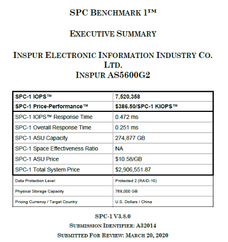 浪潮存储SPC-1报告解读