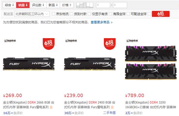 更让人诧异的是,即便是高端产品,金士顿的诸多产品竟然还可以连续多年成为爆品,比如金士顿旗下的HyperX FURY雷电DDR4内存,在京东商城DDR4内存中的销量竟然牢牢占据前两名。