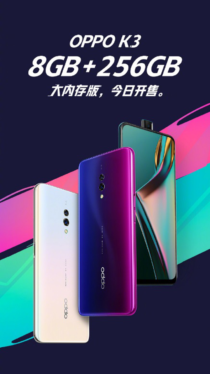 此外,OPPO K3还搭载了诸多领先行业的创新科技。6.5英寸AMOLED全面屏、升降摄像头及全新光感屏幕指纹等旗舰级创新科技、UFS2.1高速闪存等一系列的硬核配置,为OPPO K3带来旗舰级的使用体验。