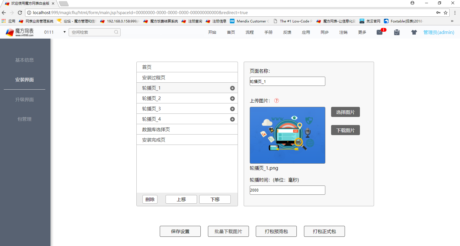 切换到安装界面选项卡,在这里设置安装包在安装时的背景图和轮播动画图片