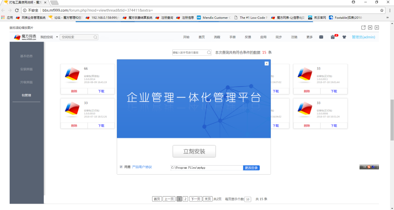 打包工具将魔方网表变成了一个强大的应用生成器,集成商通过魔方网表的高效开发能力,为不同的客户快速的开发应用产品,再将这些开发好的应用的整个空间打包成一个安装程序(exe文件),提供给客户安装使用。开发过程中,集成商可以根据用户需求,对产品名称、描述、联系方式、Logo和安装界面完全自定义(全部实现OEM)。