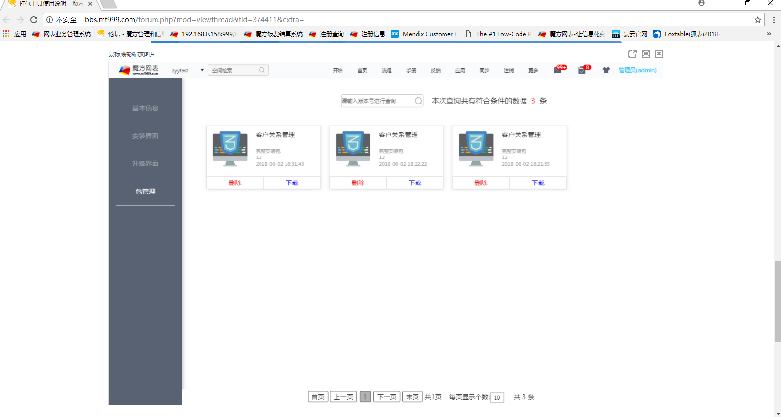 打包完成后,您可以切换到“包管理”选项卡,此处可以下载在本空间打包的所有版本,也可以删除打包记录
