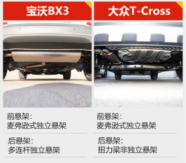 T-Cross在主动刹车、PM2.5以及可开启全景天窗上拥有领先的优势,而BX3有几个T-Cross没有的贴心配置,但却可以大大方便车主日常使用,诸如同级唯一配备的电动尾门、360°全景泊车、 液晶仪表、自动空调、雨量感应雨刷以及更多的语音识别控制系统,从实用性以及安全性上给到消费者更好的驾乘体验。不过考虑到T-Cross更高的售价以及在发动机上低一个档次,总的来看,BX3的整体配置上的领先优势毫无疑问大了不少。