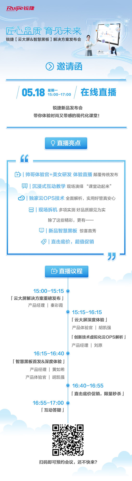 锐捷网络推出智慧教室云大屏新品:5月18日即将在线直播