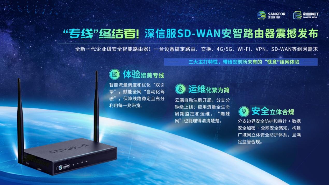在分支门店替换“专线+路由器”组网+多专线组网流量调度和优化等场景,深信服SD-WAN新品安智路由器,就是广域网组网的“诗与远方”。点击:http://pages.sangfor.com.cn/SDW-R-Product 了解更多详情。