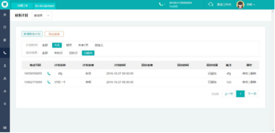 电销数据报表。通过任务、销售工作量和通话记录三张报表,方便管理者查看每个电销任务的拨打情况,并对电销人员进行管理。