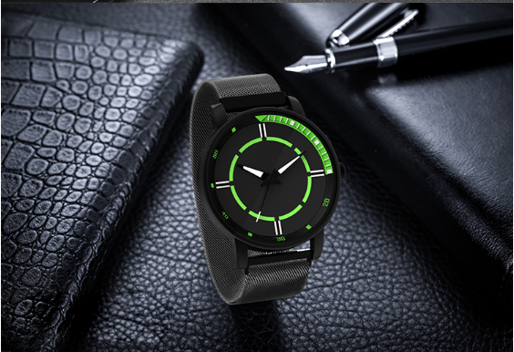 其硬件金属表身,配合黑色电镀工艺,表面设计底纹采用蚀刻工艺,表针的设计大开大合,配上4颗双排钉。可做到防水、防尘、防刮、防腐、抗氧化、抗震等效果。