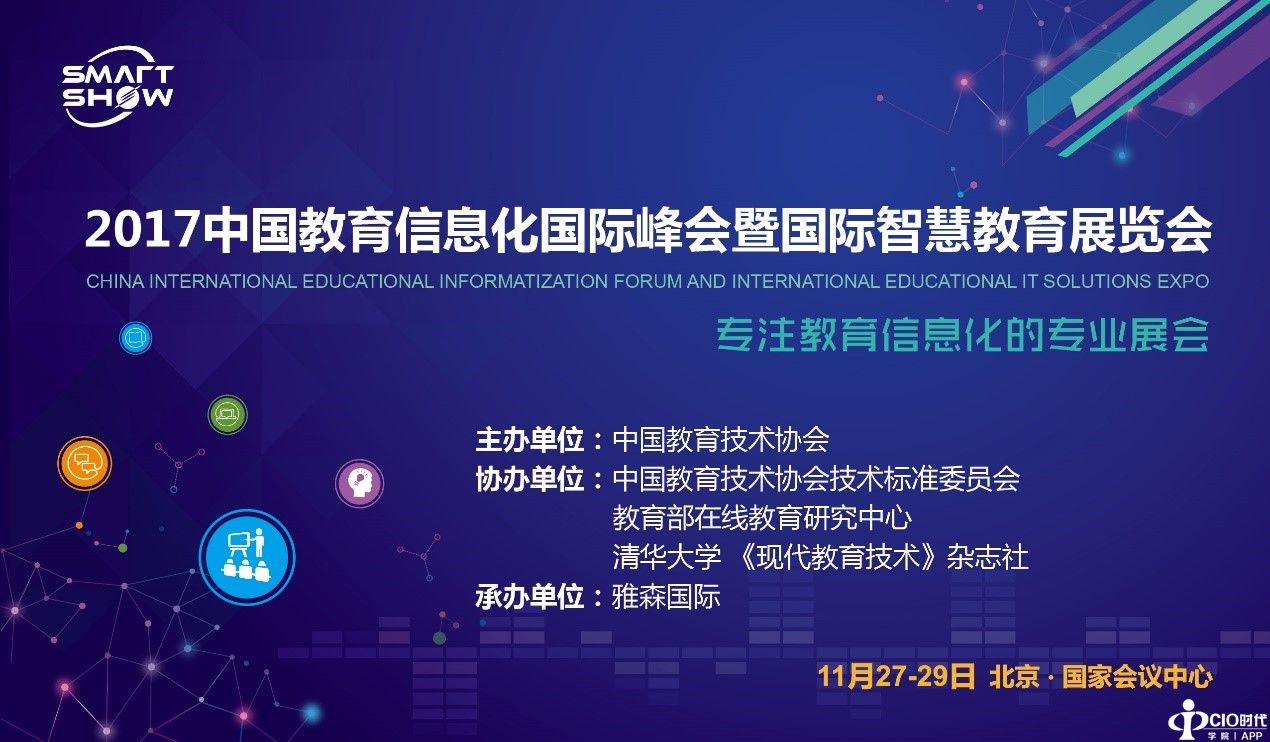 2017中国教育信息化国际峰会暨国际智慧教育展览会通过各家组织机构的共同努力及完善的筹备工作,期待与各位教育从业者及关注者于11月27~29日相约在北京国家会议中心,共同见证中国教育信息化事业的发展成就!