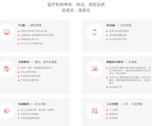 疫情防控期间,不但要保证护士自身学习不能停歇,而且要确保护理人员的专业培训不断线。培训结束,效果怎样,智能出卷考核测试一目了然。传统培训考核各环节需耗费大量的时间和精力成本。e答针对以上传统培训痛点逐一解决,培训组织者可以上传本院培训图文、视频等课件,选择培训推送人员范围,并对培训进度进行跟踪,最后通过移动线上考核解放传统的培训效果考核。