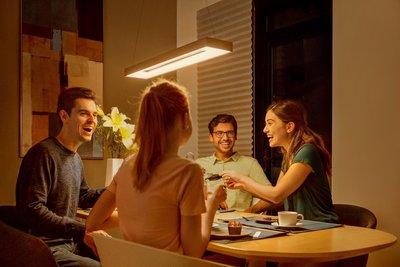 飞利浦 秀 睿哲系列产品适用于各类家庭照明需求及日常使用场景,为家居生活提供不同解决方案。例如, 结束忙碌的一天回到家中,温馨的落地灯已营造足够舒适放松的氛围,帮助家人卸下疲惫;吊灯所提供的柔和光效适宜与家人一同围坐用餐;家庭成员不论是需要静心阅读或伏案工作,桌灯的预设灯光都能为视力健康提供关爱,提升阅读与工作的专注度。