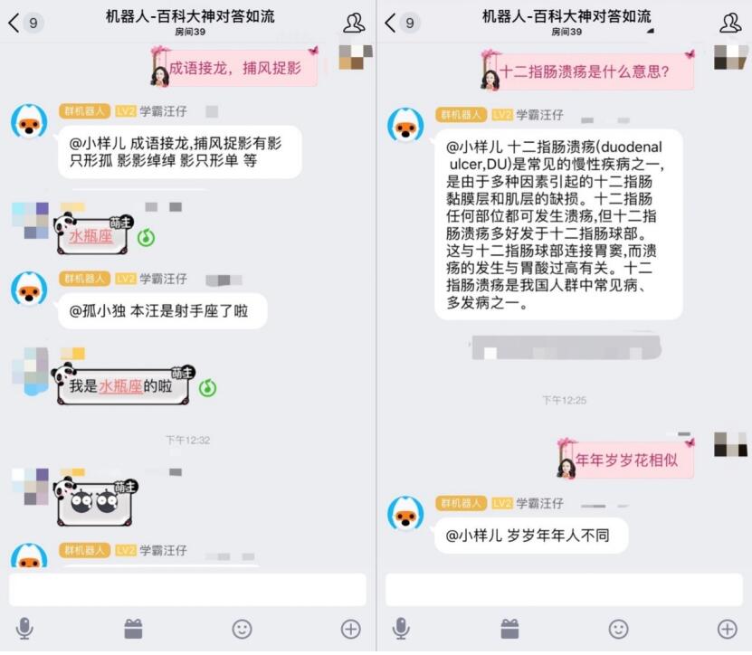 现在,网友只需通过手机QQ进入“机器人-百科大神对答如流”热聊房间,即可与“学霸汪仔”实时对话。无论是天文地理、文化常识,还是生活百科、历史知识,你只需提问,即可得到汪仔的回答,迅速满足自身求知欲。