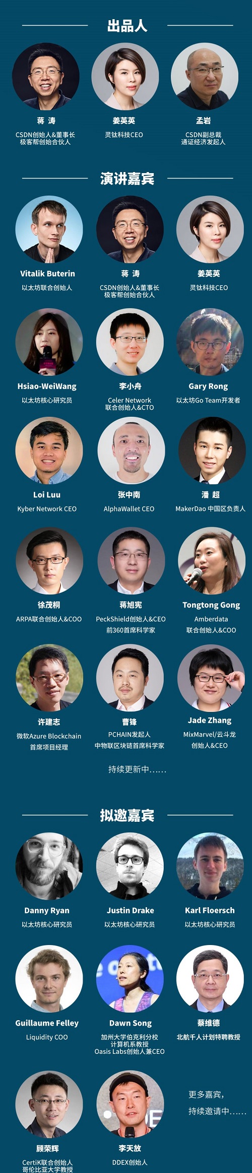 我们依然邀请到了以太坊创始人Vitalik Buterin(也就是大名鼎鼎的「V神」)亲临现场,并带领Hsiao-Wei Wang、Gary Rong等以太坊核心开发者,以及众多以太坊生态顶尖项目负责人,与国内开发者面对面!
