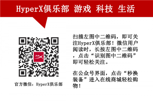 欢迎关注HyperX俱乐部微博(http://www.weibo.com/HyperXclub)与微信公众平台(微信号:HyperXclub),参加最新活动,交流产品心得。