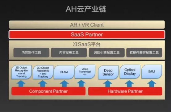 对联想新视界有关注的同学应该记得联想新视界最初是从AR眼镜开始切入市场的。但从这次白总在AWE上的演讲来看,其现在的重心,已经转移到了AH云上,希望通过AH云为纽带来打通从底层技术,设备到最终产业落地应用转化的通路,并以此形成围绕AH云的生态。白总有个观点还蛮有意思的,与很多认为工具类应用不是个很好的投资方向的投资方不同,白总认为在一个新技术逐渐进入市场的过程中,一定会需要经历一个将高新技术转化为一个普通人也能使用的技术的阶段。如果一项技术只有在这个领域的专家才能使用,那产业一定起不来。当技术转化成更多人能够轻松使用的工具的时候,才会有更多的应用场景被发现,最终转化成商业价值。而在这个过程中需要非常多的合作方的参与。需要有对行业有了解的方案商去探索应用场景,会需要硬件提供商提供适用于不同场景的硬件,需要有算法公司,提供底层的AI,CV算法。需要组建提供商,为不同的需求提供专用模块。AH云将会以一个开放的姿态与产业链上的各方合作。