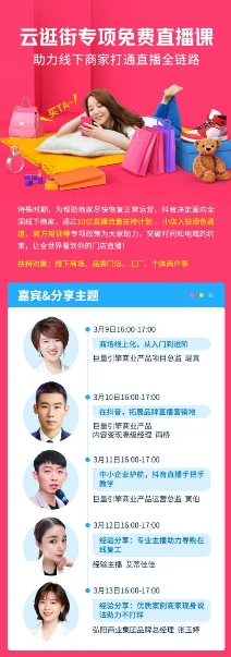 面向新入驻抖音直播推广的商户,抖音将上线针对不同主体的官方专属培训课程,内容涵盖购物车玩法、小店平台指引与优质案例分享等多个方面,还将针对商场、品牌门店等中小企业分别对“云逛街”项目进行解析,比如培训商场正确直播的推广方式、专业主播传授导购直播话术、教授品牌拓展抖音流量池最佳方案等。届时,已经参与项目的case主播及商家负责人也将现身与大家分享相关经验,不同课程将全方位助力商家上手抖音直播,快速实现抖音线上营销能力的跃迁。