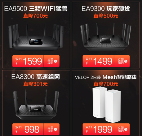 最后附上一点福利,上代机皇Linksys EA9500日常零售价2299元,双11活动价1599元;经典款Linksys EA7500日常零售价899元,双11活动价599元;游戏专属路由器Linksys WRT32X日常零售价1999元,双11活动价1759元...以上优惠没有任何门槛,下单即可享受。当然,如果想在双11当天下单,也许会有意外惊喜也是有可能的。