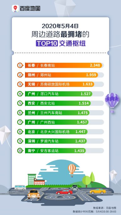 (百度地图“5月4日周边道路最拥堵的TOP10交通枢纽”)