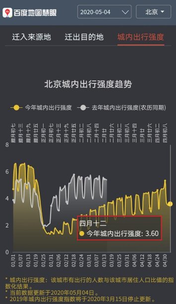 (百度地图迁徙大数据平台-北京城内出行强度趋势)