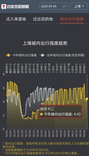(百度地图迁徙大数据平台-上海城内出行强度趋势)