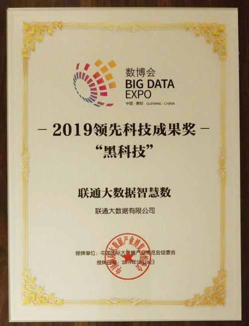 此外,联通大数据“基于信令大数据的基站智能纠偏技术”以及“数据追踪溯源系统”入选2019数博会领先科技成果奖-“优秀项目”奖。