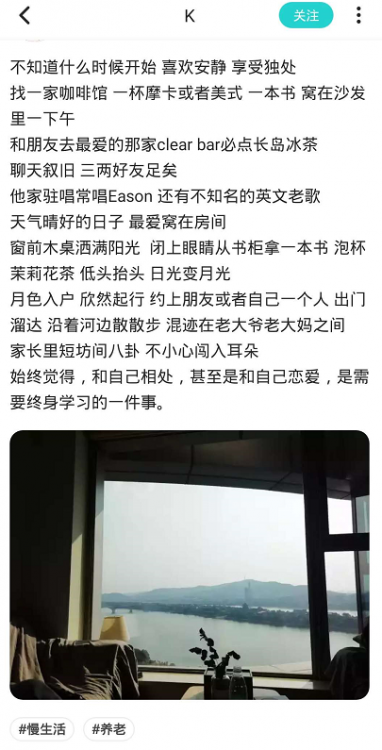 在这种大环境下,Soul的用户再次表达了自己的想法:“想要过慢生活”,生活不只是努力是拼搏,更应该慢下来学会享受,学会观察。“没有必要在二十岁的时候强求三十岁的东西,三十岁的时候强得四十岁的地位。”慢下来,反而能体会到生活的快乐。