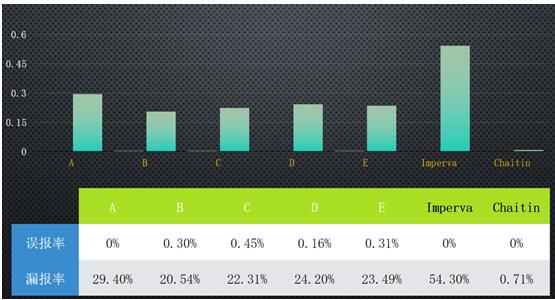 为验证自己所言非虚,陈宇森从业内公认的评价一款防护产品效果的两大维度:误报和漏报出发,列举了七家传统WAF厂商(含魔力象限过去三年领跑者Impreva)的表现,可以明显的看到传统WAF厂商,对于稍微复杂一些的攻击几乎没有拦截能力,且在误报和漏报这两个最基本客户需求上存在着天然对立的逻辑悖论,低误报和低漏报别说同步实现,两者取其一都比较困难。