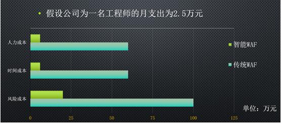 可以一目了然的看到将AI领先的技术应用到WAF 的长亭科技NG-WAF产品,跟核心引擎多采用正则表达式集合的传统WAF相比较,误报率相近的情况下漏洞率高的吓人(传统WAF业内潜规则:因为高误报会影响企业业务,所以为了保持低误报率不得不牺牲漏报率,更重要的是这类基于规则的特征码检校技术只能局限于某个特定的攻击,类似关键字匹配的方式本身就存在亡羊补牢式的逻辑缺陷,天然具备高漏报率属性)。之后,陈宇森还从人力、时间、风险等三个维度分析了企业部署WAF产品时的综合成本对比,结果依旧是NG-WAF全面秒杀传统WAF。