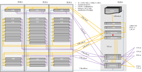 在硬件的利旧上,保留原有分发系统、内网、外网以及安全等设备,原有设备连接到华三的千兆核心交换上,九州云虚拟化平台,包括服务器和集中存储连接到四个万兆交换机上。华三核心交换机和新的万兆交换机通过万兆线路连接。