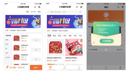 创建属于自己的微信小程序店铺,分享,让附近的消费者看到你,移动购物,结合送货上门服务,打造店铺的差异化优势 ;