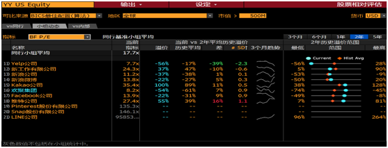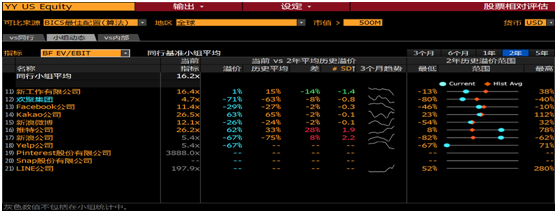 根据彭博的数据,无论是市盈率,还是企业价值倍数指标,都可以看出欢聚集团相对于行业其他家被严重低估,较历史平均值低估50%以上。