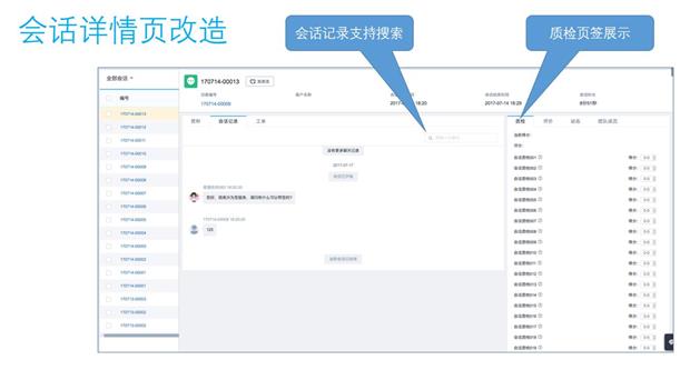 语音及会话详情页增加质检页签,质检员和客服经理不再需要去呼叫中心听录音、去微信查聊天记录,一切都可以在客服云系统中直接获取,直接评分。
