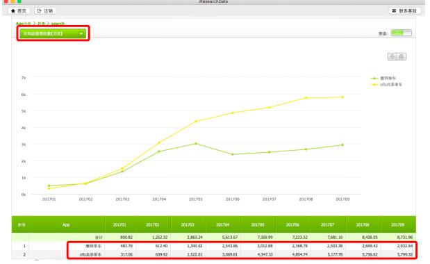 综合艾瑞2017年9个月的月度数据来看,ofo月度活跃用户规模已持续5个月领先摩拜,且月度总使用频次、日均使用频次、单个用户月度总使用频次、单个用户单日使用频次均比摩拜高出近一倍,并保持至少连续8个月的领先优势,用户活跃度和用户粘性远高于摩拜,用户品牌忠诚度更高,稳居共享单车第一,成为众多用户的首选品牌。