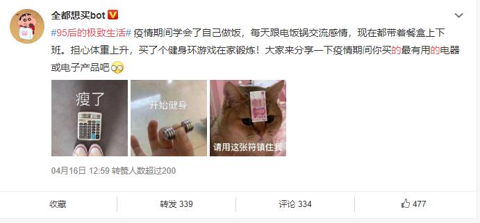 在微博平台, 更有@天秀bot@一只小胖几啊@全都想买bot等超过21个微博大V参与话题#95后的极致生活#互动,几个小时内,就达到了超过两千万的讨论热度,共同围观新生代消费势力的极致生活哲学。
